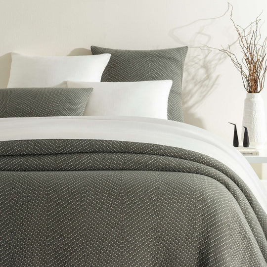 Textured and lofty with a soft hand, this double layered, pick-stitch chevron coverlet and matching sham is sure to become an everyday essential. A lightweight cotton, year-round bedding layer with sumptuous texture, it flies solo in the warmer months but plays well, teamed with other layers, during the colder months.